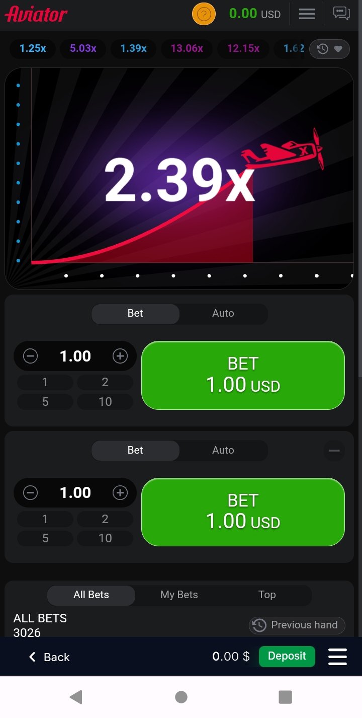 The Aviator plane game allows players to place single or double bets in one round. Double bets give you more control because, in this case, you can withdraw one bet early and let the second bet ride for a potentially higher multiplier.
